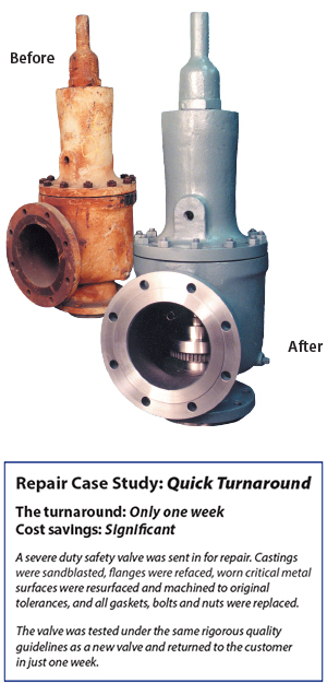 Our repair capabilities keep your customers’ safety and relief valves in peak operating efficiency, minimizing downtime and saving money. Our factory-trained personnel spot potential problems and recommend the most economical ways to solve them.