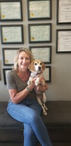 Peggy grew up with beagles and adopted Daisy—who suffered a horrific ear infection, overgrown nails and malnourishment—and all her little quirks, like being finicky about her beds and turning them upside down before settling in for the night. Unwilling to leave Daisy alone all day, Peggy “drives Miss Daisy” to NASVI most days where she roams the offices, getting belly rubs and treats.